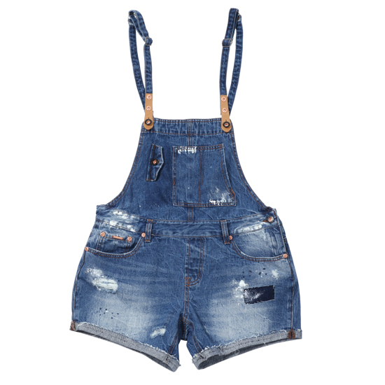 디스트로이드 디테일과 스티치 디테일이 빈티지하고 귀여운 느낌을 주는 오버롤 팬츠